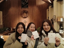 牧師館では、メッセージカードに一緒に来場した人の幸せを願うメッセージをしたため、互いに贈り合う「Message of wishes」を開催。会社の元同期同士で各地から集まり、互いにメッセージを書き込み交換する人たちの姿も見られた。
