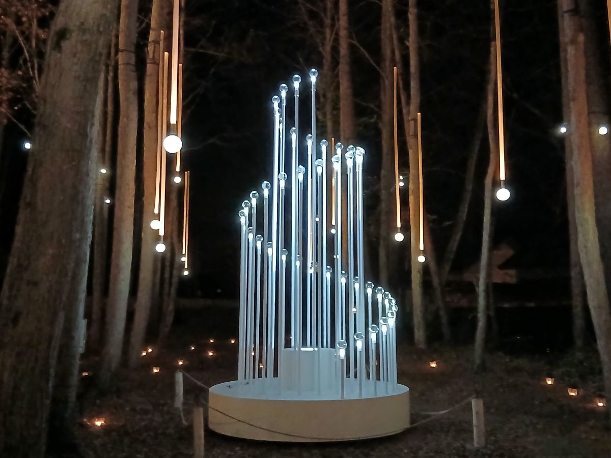 教会の森には、今年新たに、星に願いを込める「Wishing tree」が登場。いくつものガラス球がらせんを描きながら空に向かっているクリスマスツリーのオブジェの周りには多くの人たちが集まって写真を撮っていた。同教会の坂井亜美さんは「大切な人の幸せを願う思いが、上に向かって伸びる光によって星に届くことをイメージして企画した」と話す。