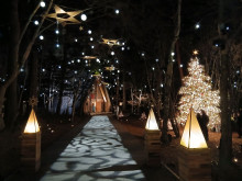 軽井沢高原教会(軽井沢町星野、TEL 0267-45-3333)が現在、「軽井沢高原教会 星降る森のクリスマス」を期間限定で開催している。