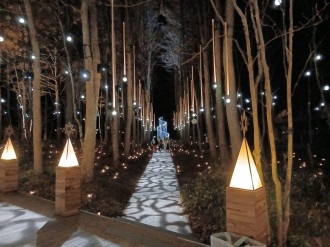 入り口に高さ3メートル、全長9メートルの「星くずのトンネル」を設置=ケラ池スケートリンク