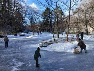 軽井沢「ケラ池スケートリンク」(軽井沢町星野)に現在、期間限定で天然氷エリアがオープンしている。