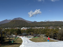浅間山を眺めながらスキー=軽井沢プリンスホテルスキー場
